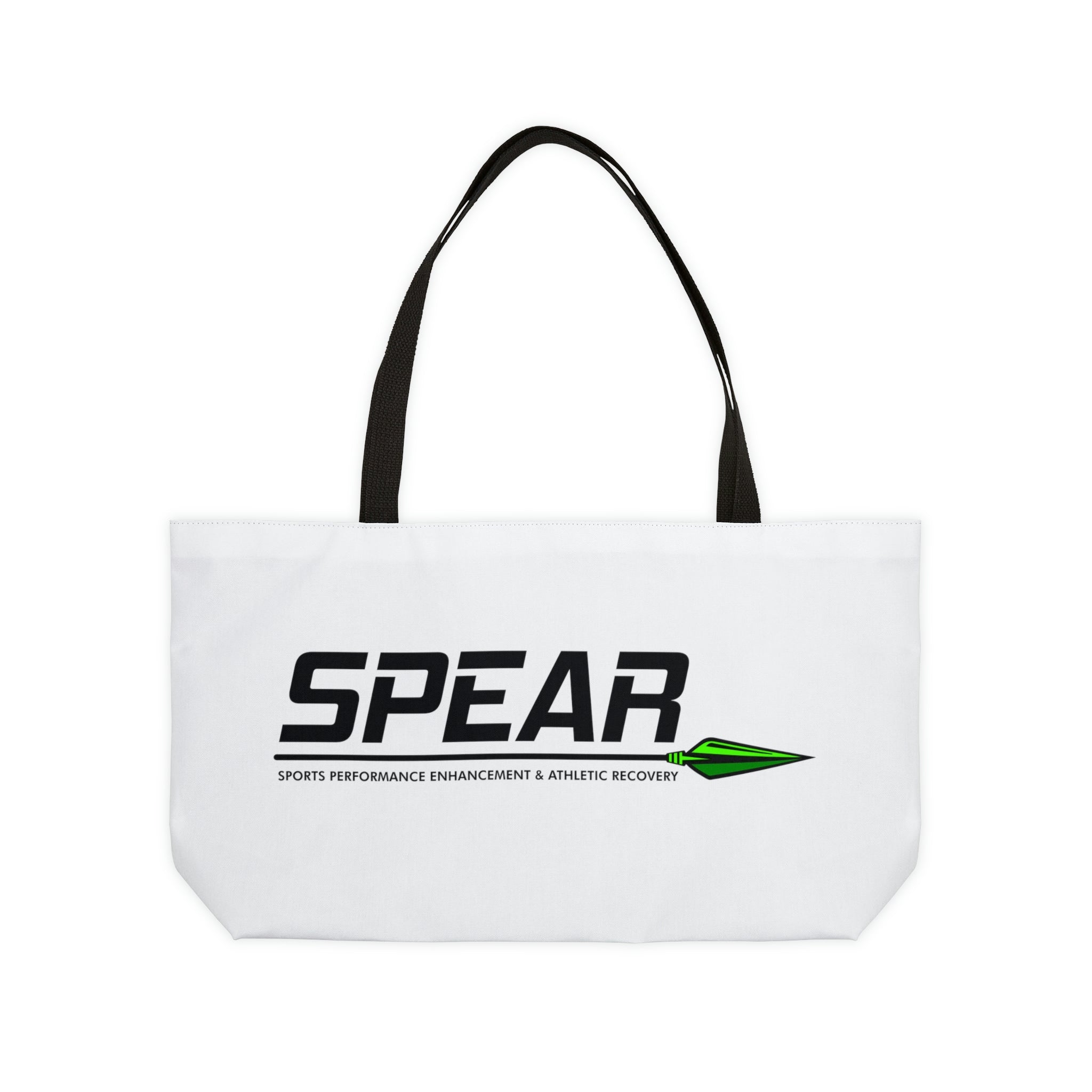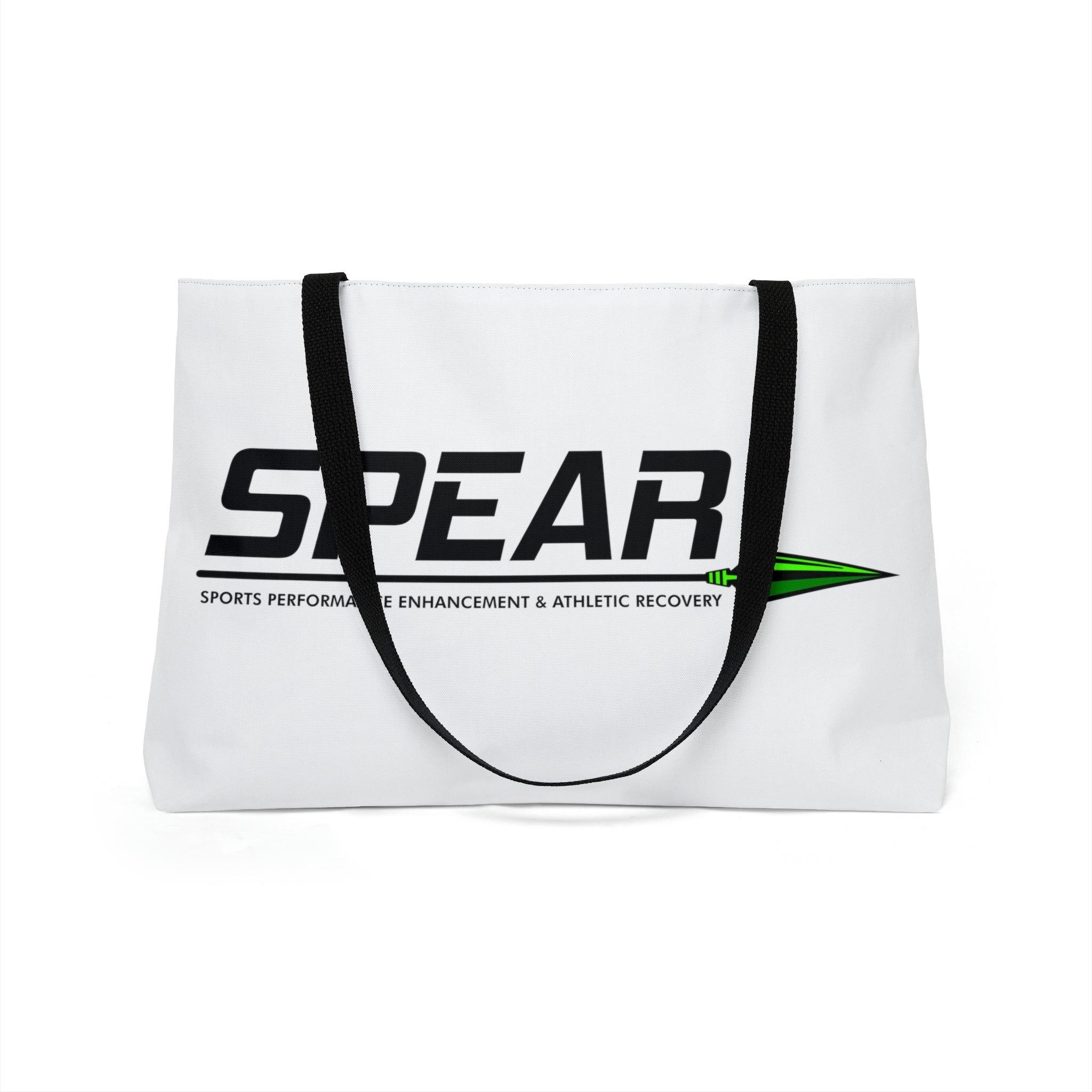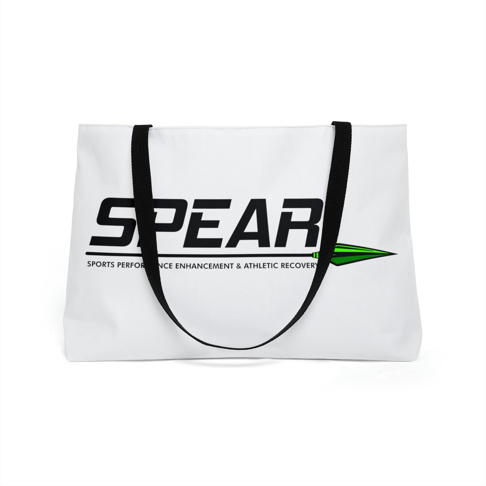This personalized weekender bag comes in one size – 24" x 13" (60.9 cm x 33 cm) – perfect for those who love to travel light. Its t-bottom construction and black handles give it a sleek, classic look. Start designing, and we'll print your art on the 100% spun polyester in vibrant colors.